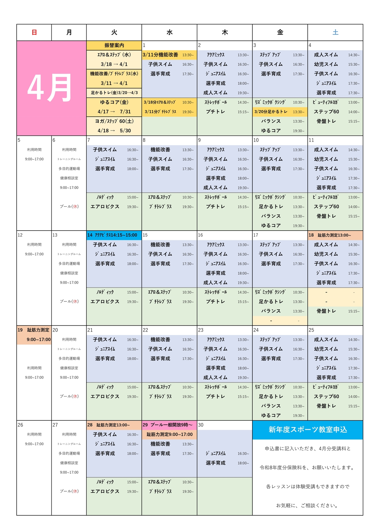 ホーム > お知らせ > 4月スポーツ教室の予定